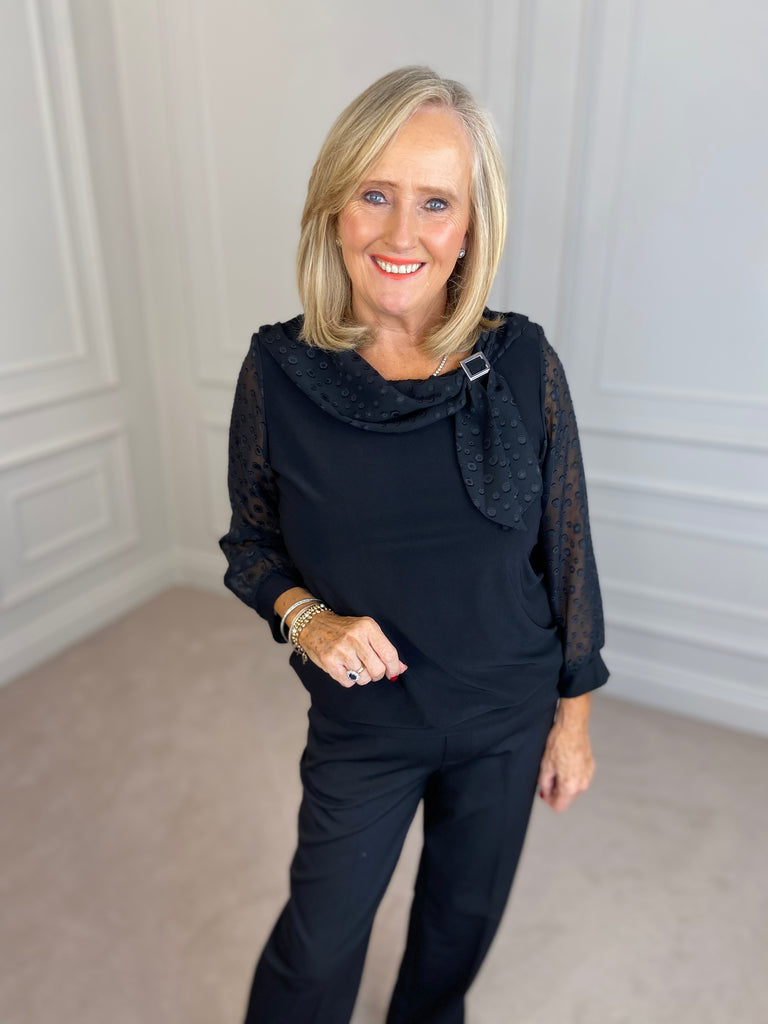 Cowl Top with Brooch - Black