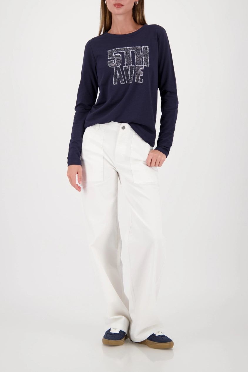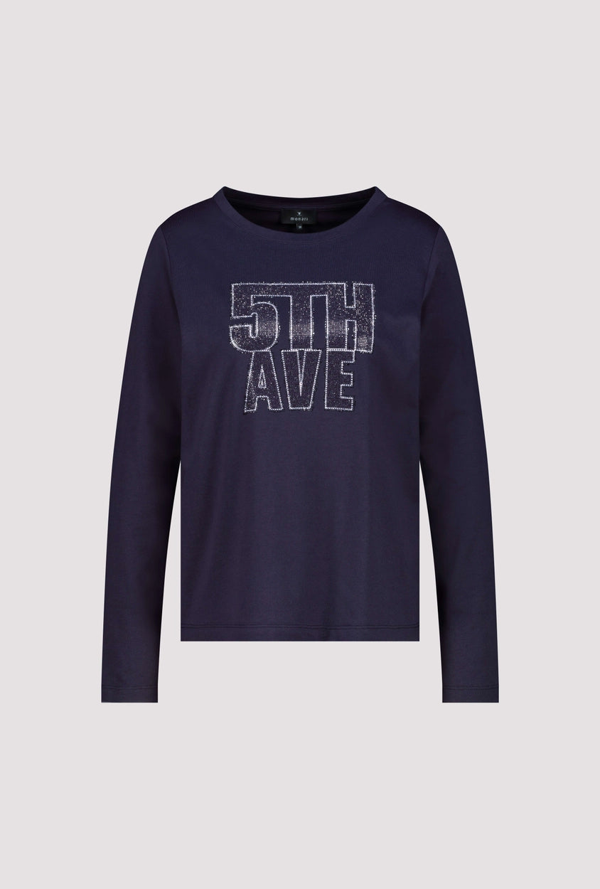 Elegant long-sleeve shirt made of a high-quality cotton with modal and sparkling "5th Ave" lettering made of rhinestones.