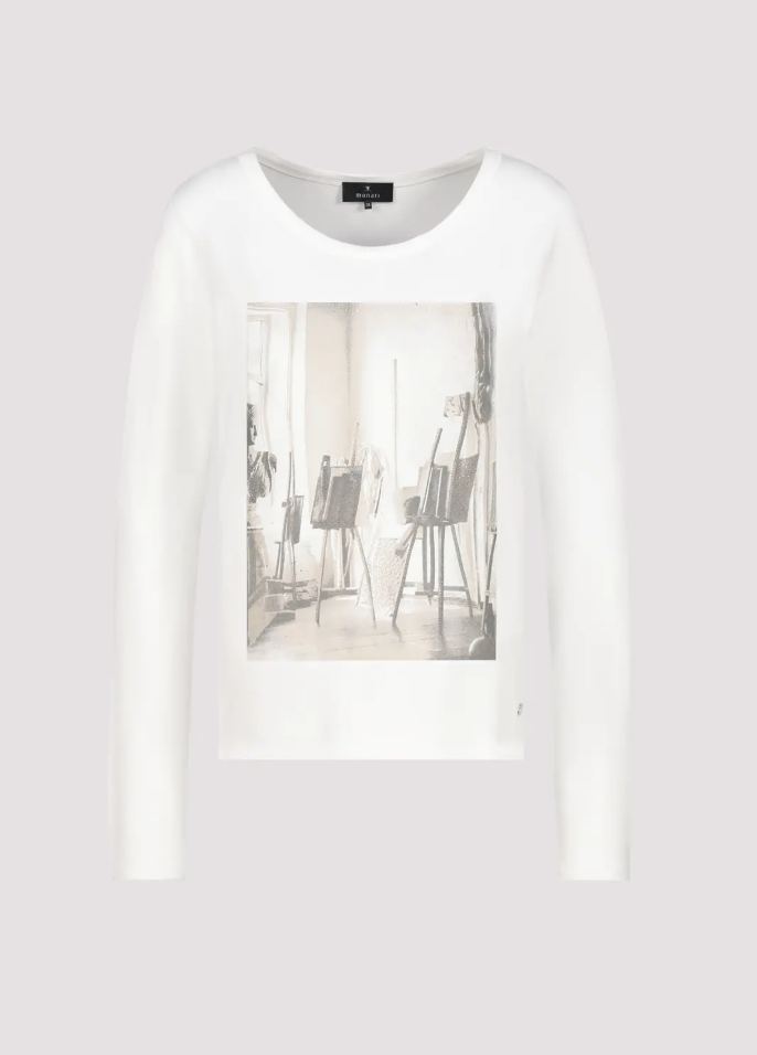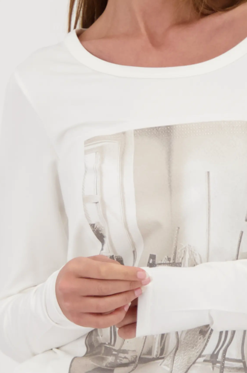 Elegant long-sleeve shirt made from flowing viscose with a soft texture, featuring an atelier print and sparkling rhinestones – for a stylish appearance.