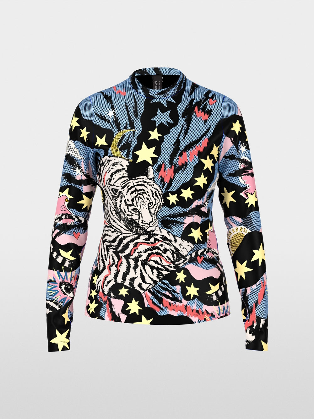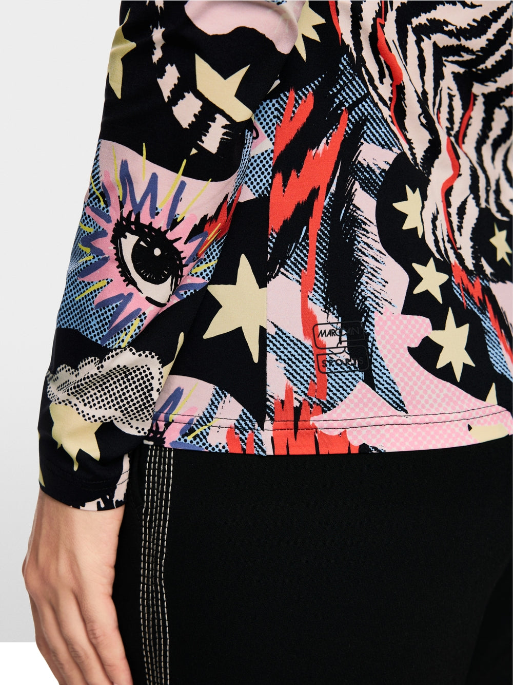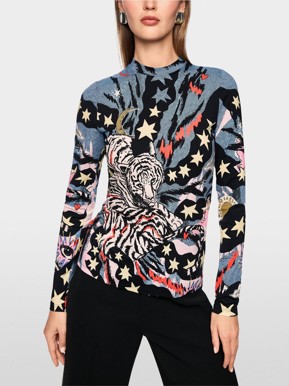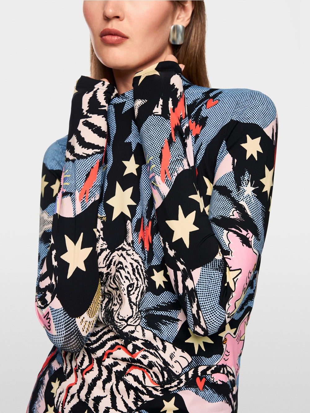The graphic all-over print makes this long-sleeved shirt a real eye-catcher. It has a figure-hugging cut and is very comfortable to wear with its stretch material. The small stand-up collar complements the sporty-elegant look. It can be perfectly complemented by a blazer, for example.