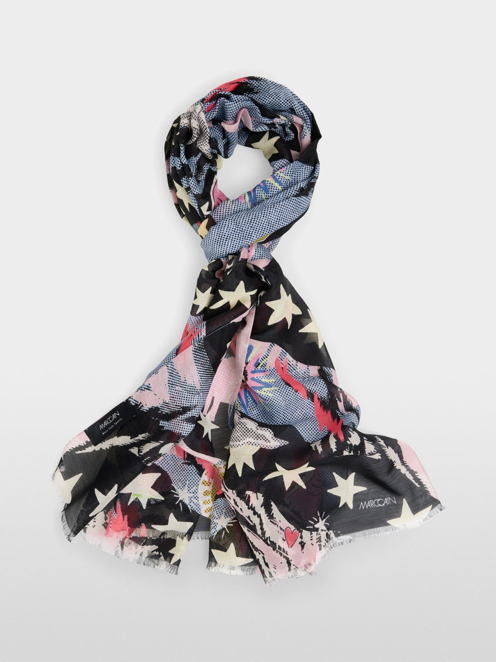 Long scarf made from a soft fibre blend with cotton and silk. The eye-catching all-over print is a real head-turner and adds that certain something to any outfit, while the fine fringes give this accessory a casual touch.