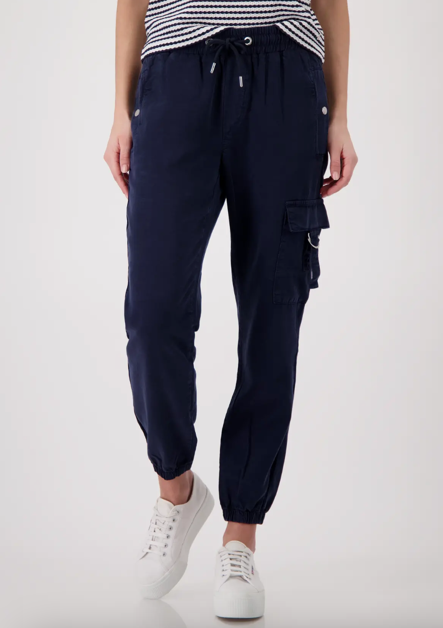 Stylish cargo joggers with elasticated waistband and practical pockets – perfect for the confidant woman.
