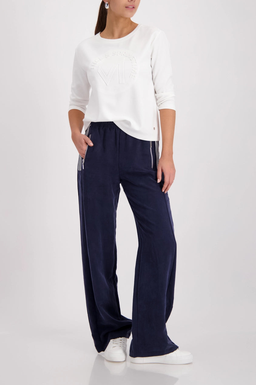 Stylish sweatshirt made from a flowing viscose fabric with embossed print and rhinestones.