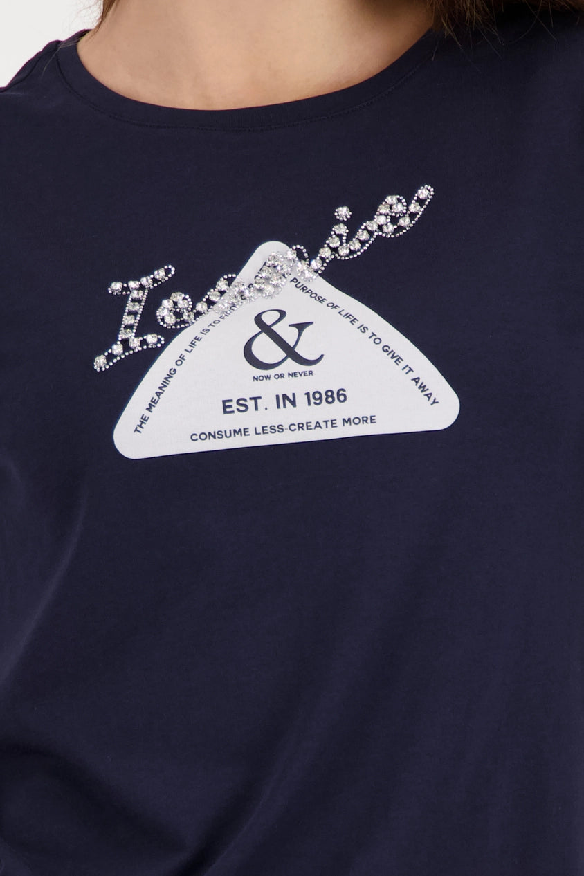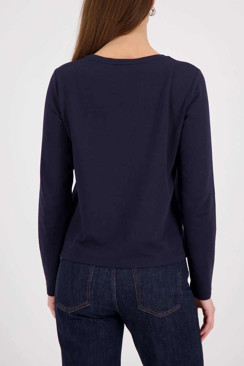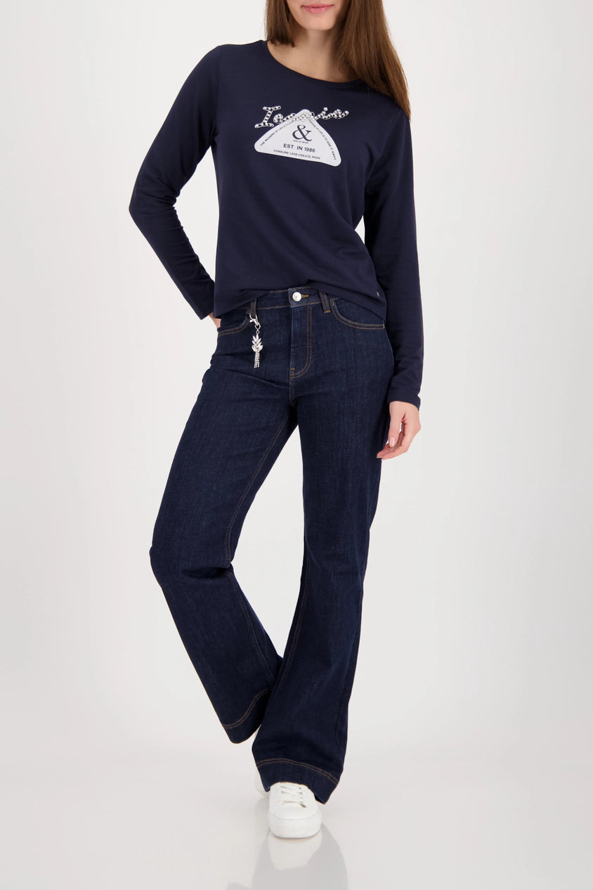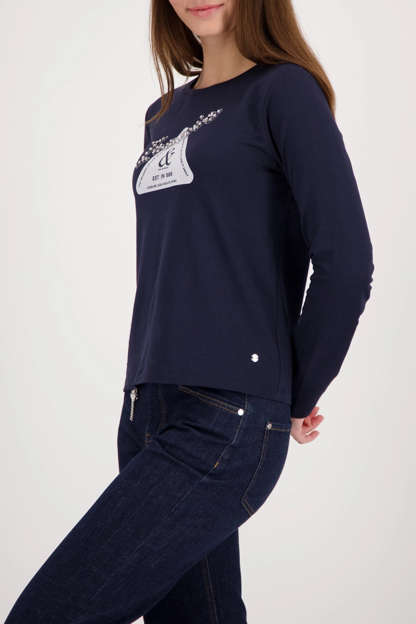 An elegant long-sleeved shirt made from high-quality cotton and modal, embellished with a radiant rhinestone emblem. The perfect companion.