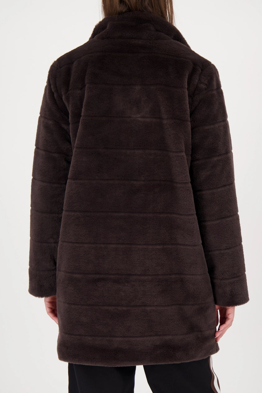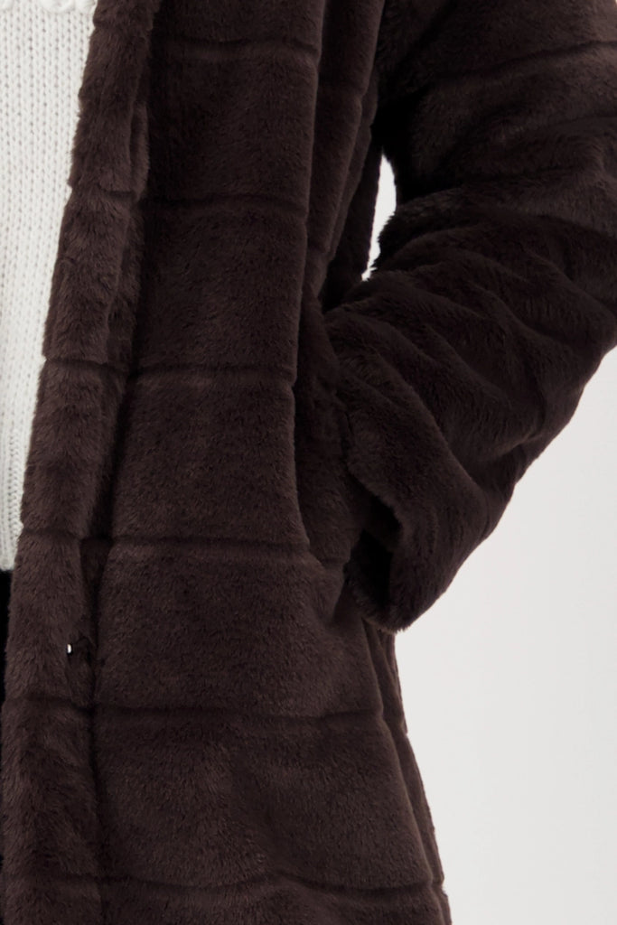 Stylish faux fur coat with a fluffy feel and practical pockets. A fashion statement for every occasion.