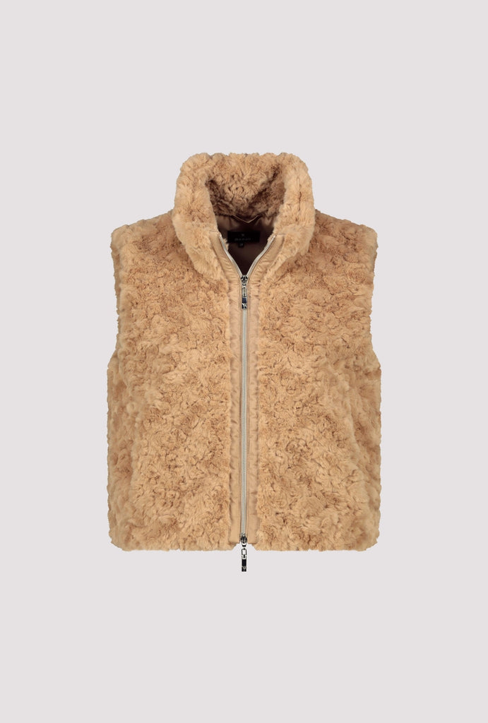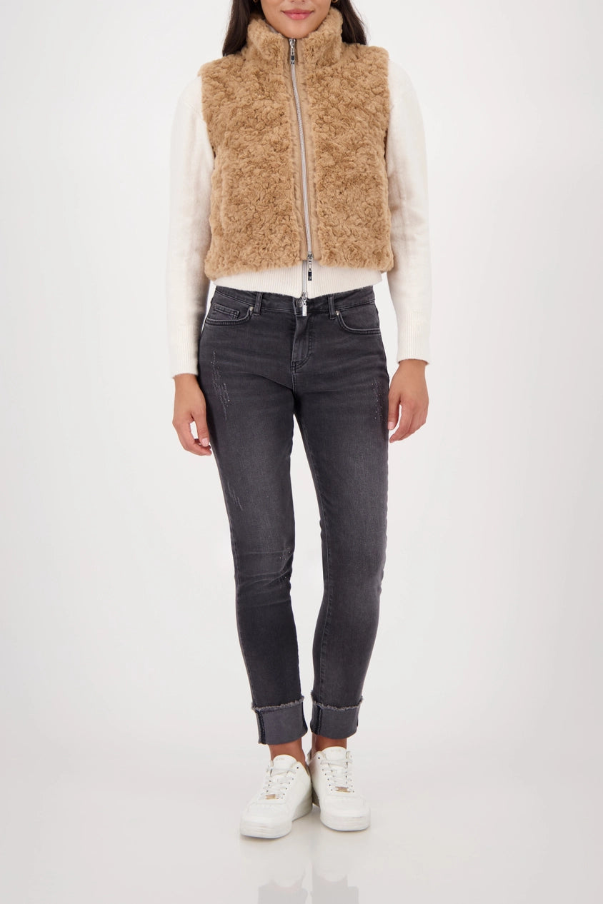 The cuddly soft faux fur vest impresses with a stand-up collar and side pockets.