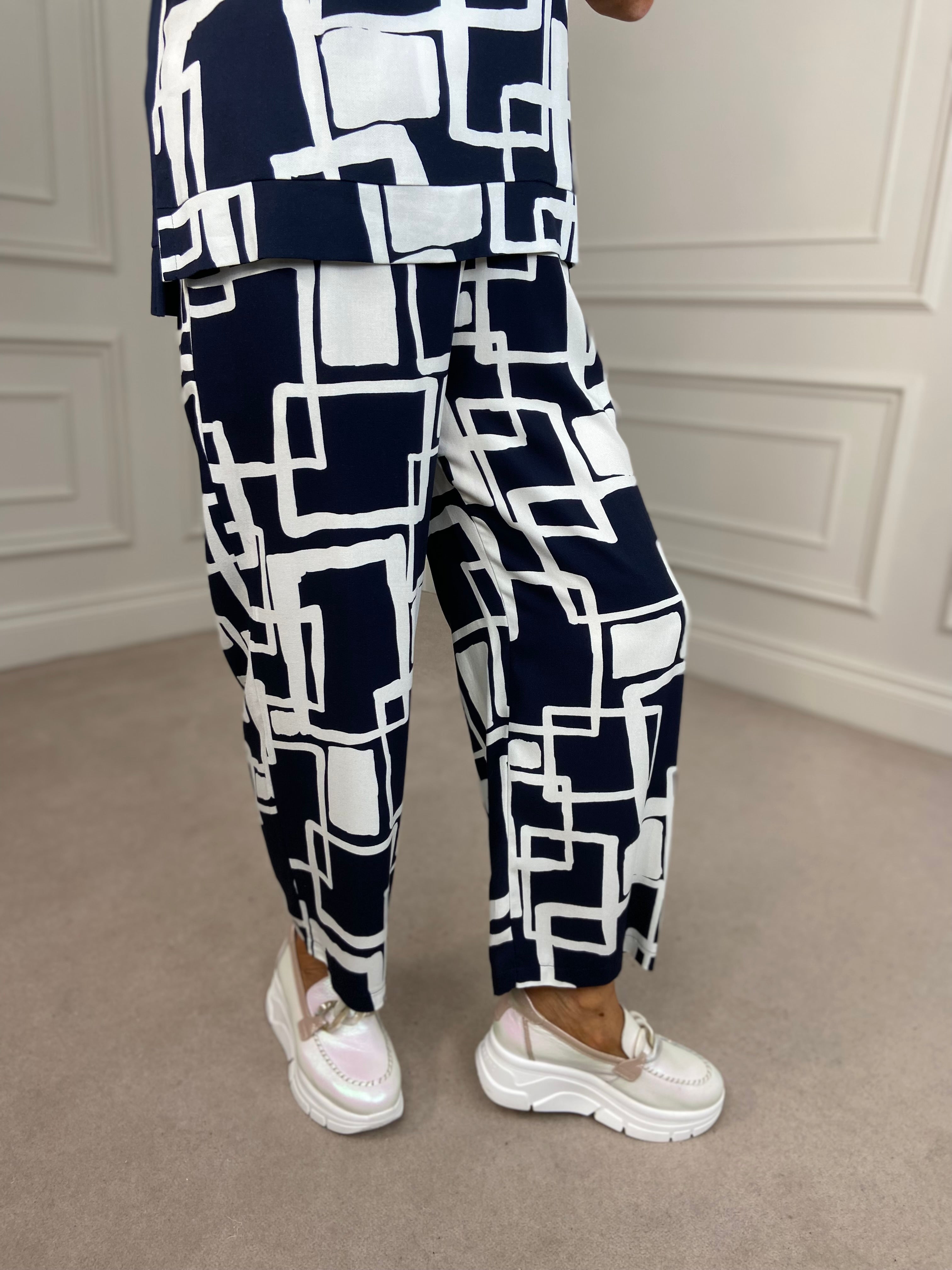 Geo Print Pant - Navy