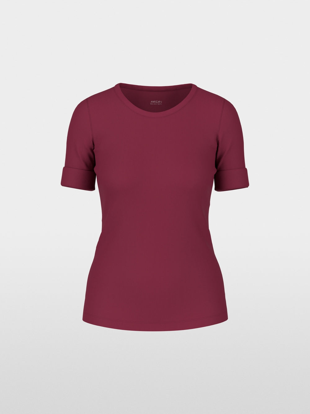 This figure-hugging T-shirt is an uncomplicated basic which is extremely comfortable to wear. This is thanks to the pleasant material mix of fine cotton and elastane. The wide round neckline and ribbed knit look emphasise the casual look. The mid-length sleeves can be casually rolled up.