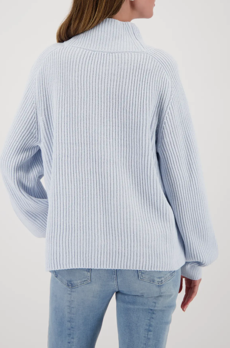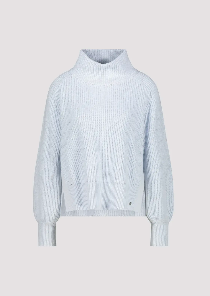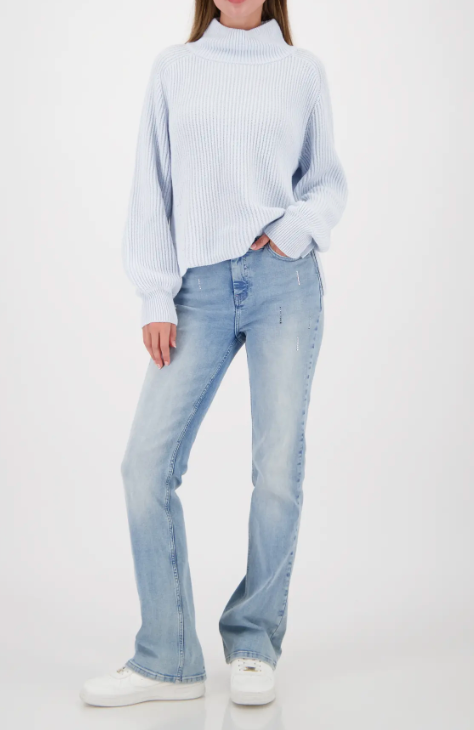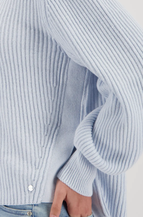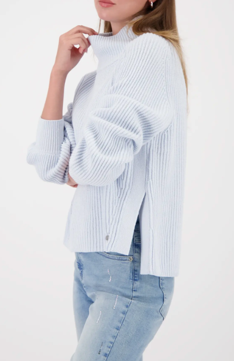 This elegant long-sleeve knit sweater made from a high-quality cotton blend with side slits combines style and comfort.