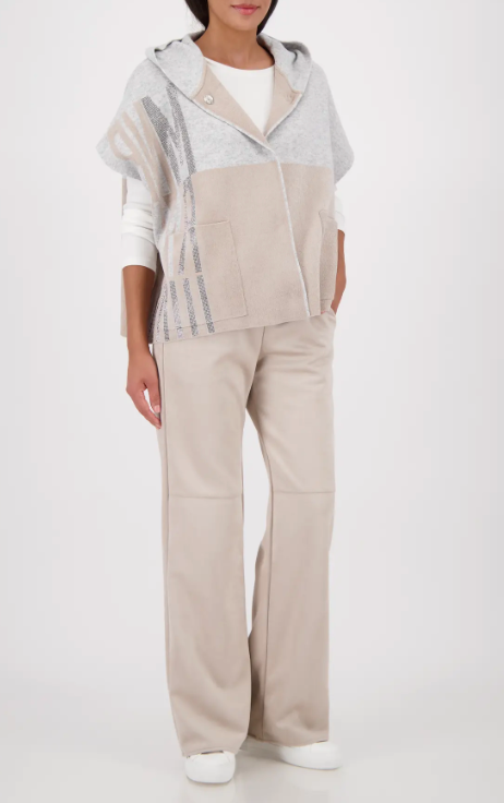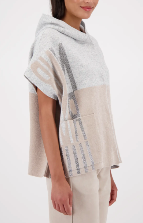 This asymmetric sweater made of flowing viscose impresses with a gathered side with a slit, leopard print, and sparkling rhinestones.