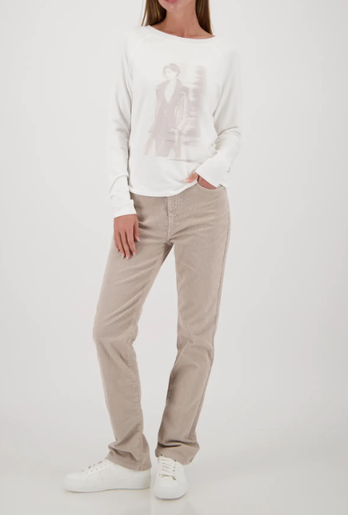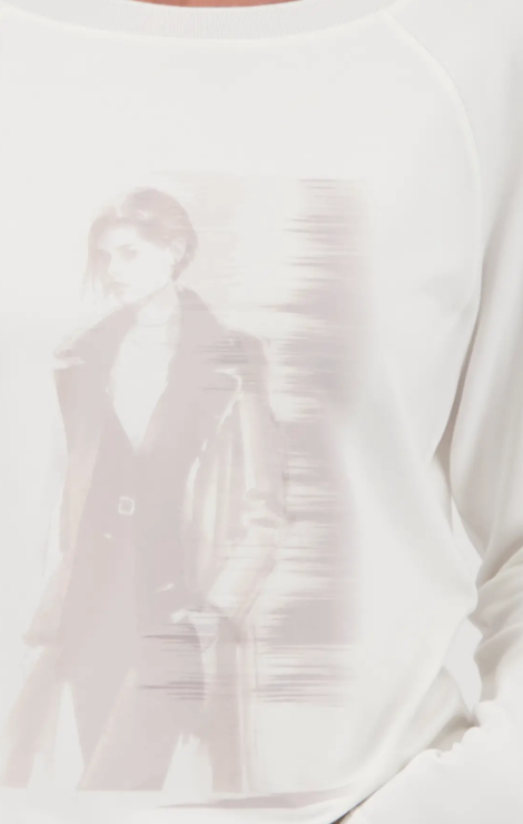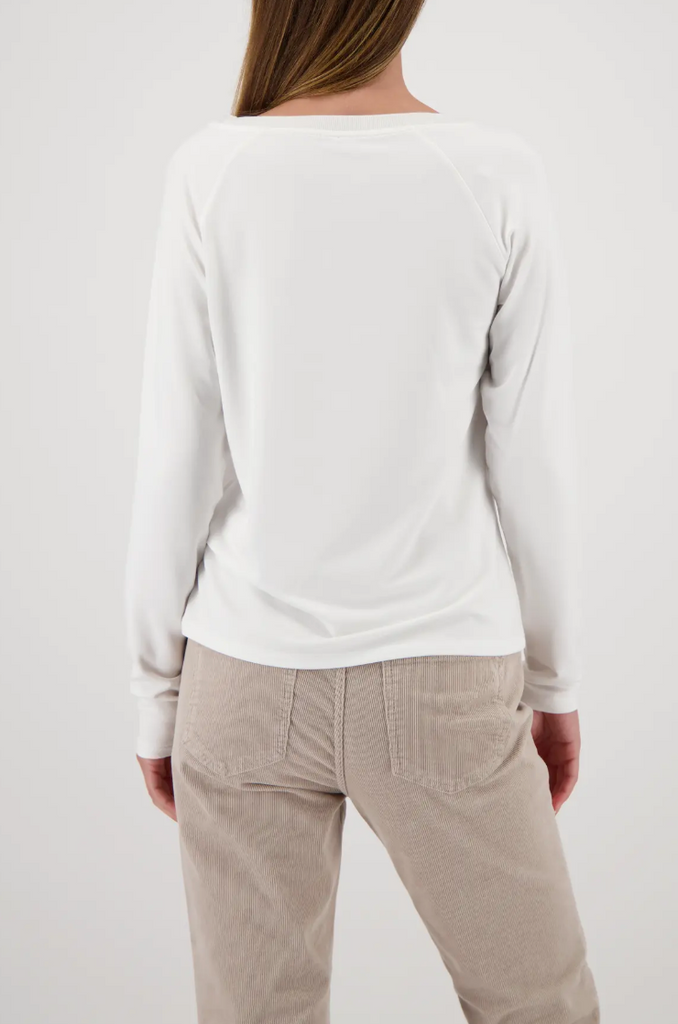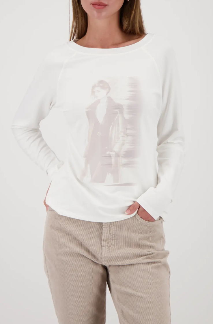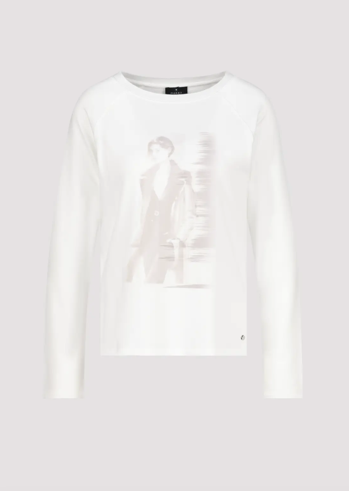 This elegant long-sleeve shirt combines flowing viscose with a terry cloth on the inside and a stylish women's print.