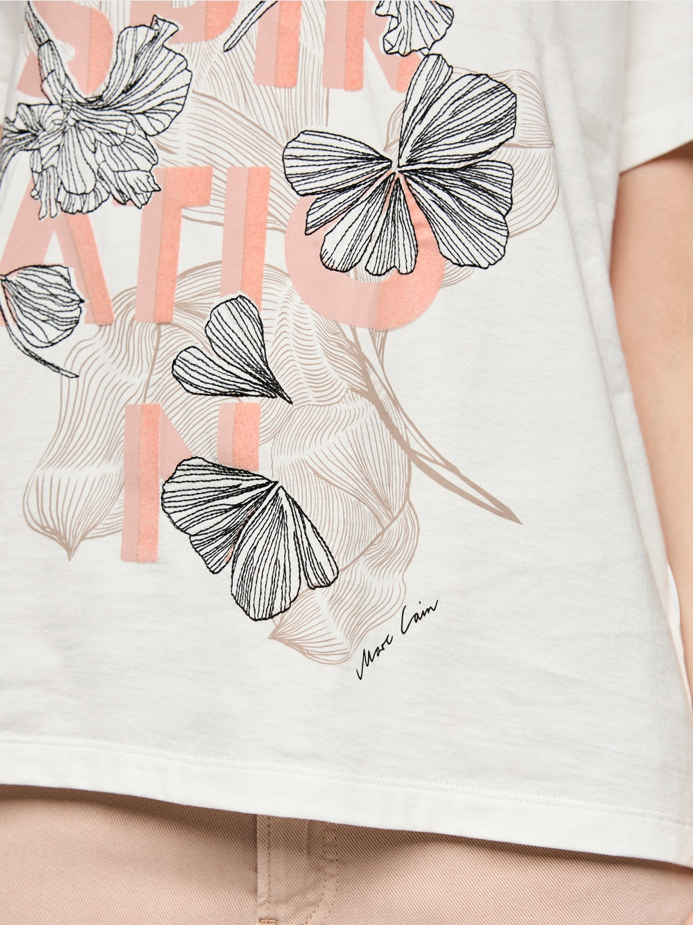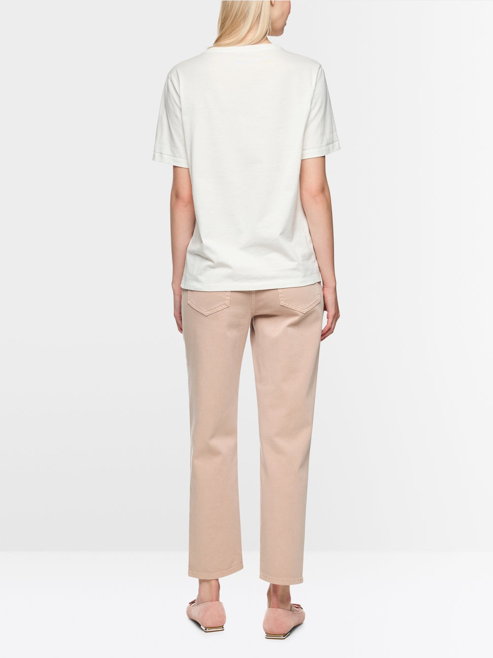 This T-shirt is made from pure organic cotton with a round neckline and rolled-up sleeves. A playful pattern and subtle embroidery details add charming highlights. Pleasantly soft to wear – ideal for casual everyday looks. This T-shirt is from the ‘Rethink Together’ sustainability label.