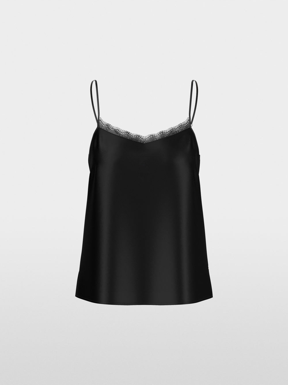 This delicate top flatters the skin with its fine silk. The lace insert on the V-neck is a real eye-catcher. Fine straps, which can be individually adjusted, complete the feminine style. The top has bust darts and a slight A-line silhouette.