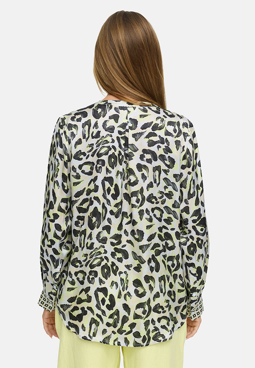 Leopard Print Satin Blouse - Yellow Leopard