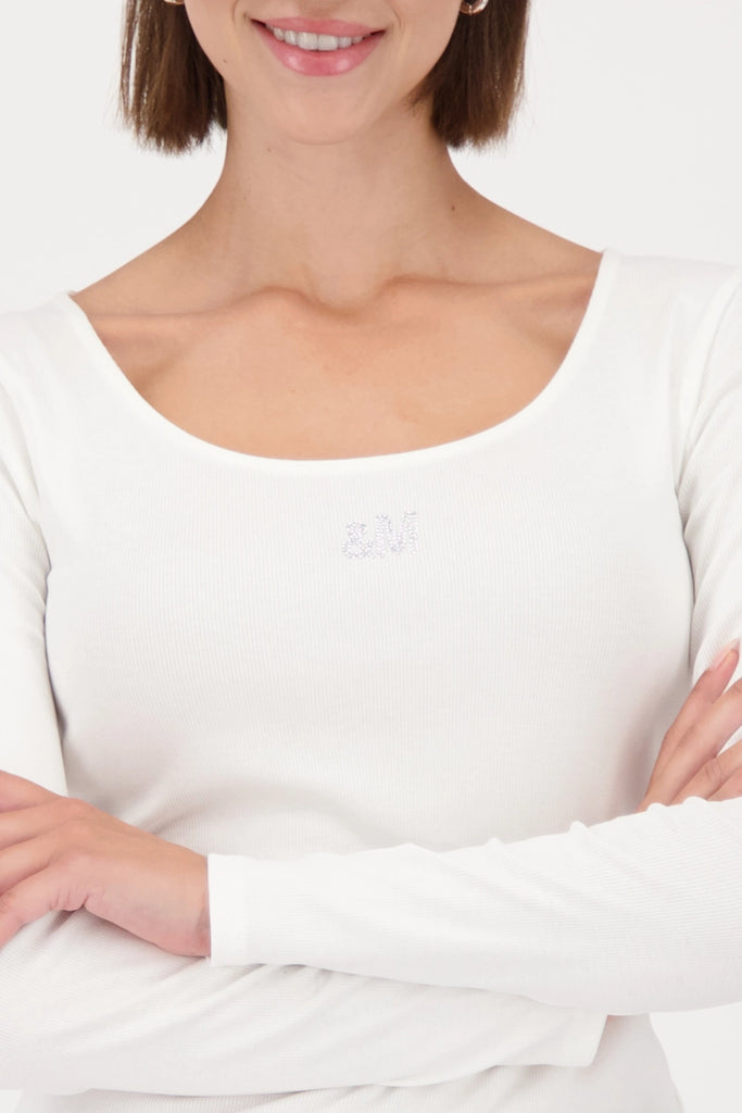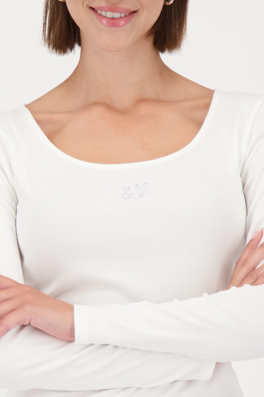 Elegant long-sleeved shirt made of high-quality cotton with a ribbed pattern and sparkling decorative detail for individual style accents.