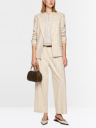 This blazer with shoulder emphasis impresses with a high-quality blend of viscose, linen and cotton. The subtle all-over leopard print adds a touch of fashionable elegance to the look. Slit sleeve cuffs, a single-button closure, classic flaps and a deep lapel emphasize the modern, confident silhouette.