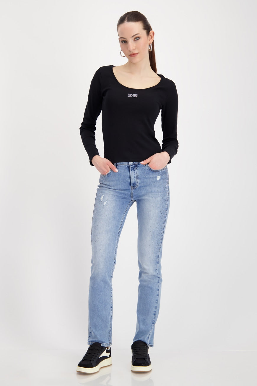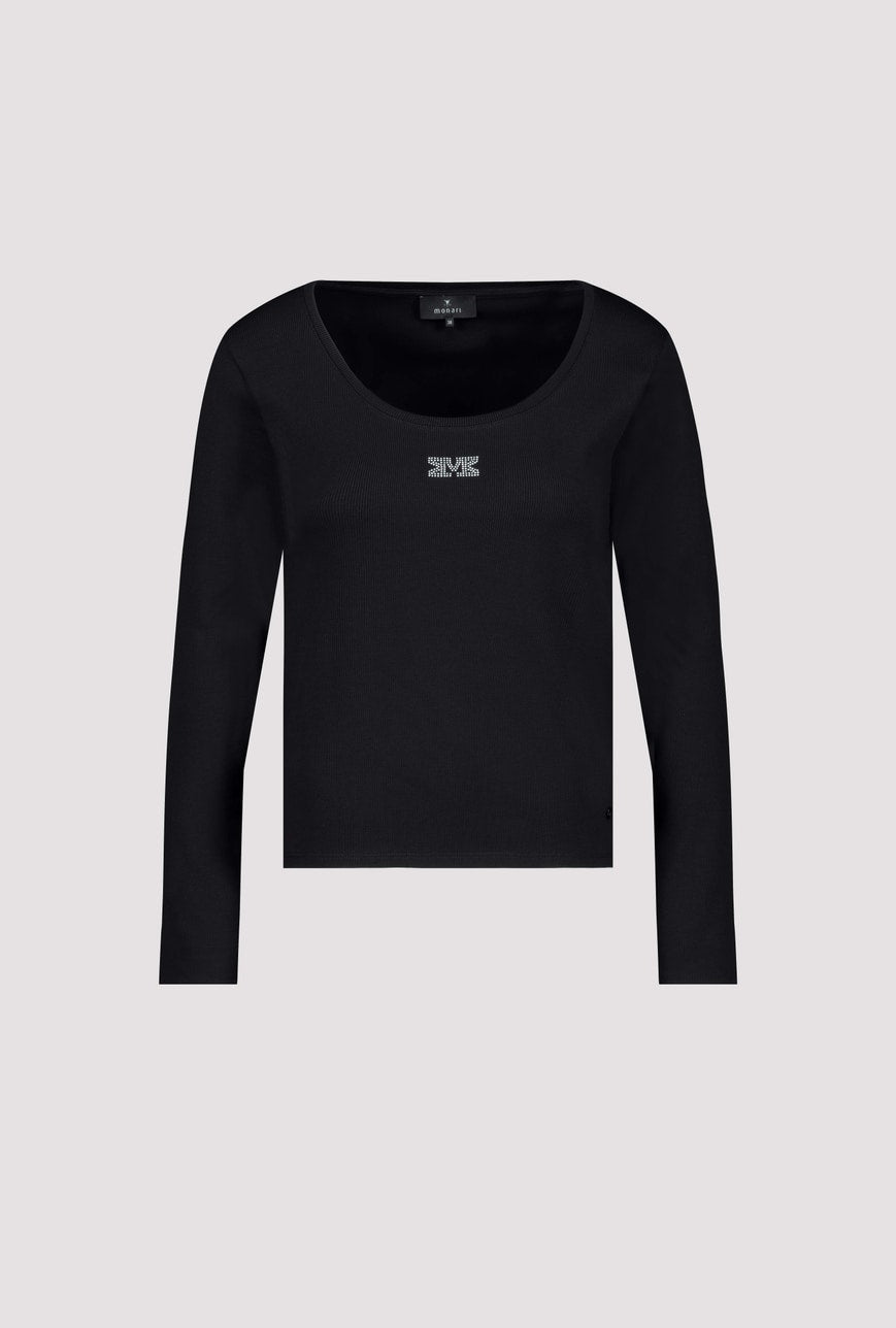 This long-sleeved shirt made of high-quality, stretch cotton offers a tailored fit and is decorated with sparkling rhinestones.