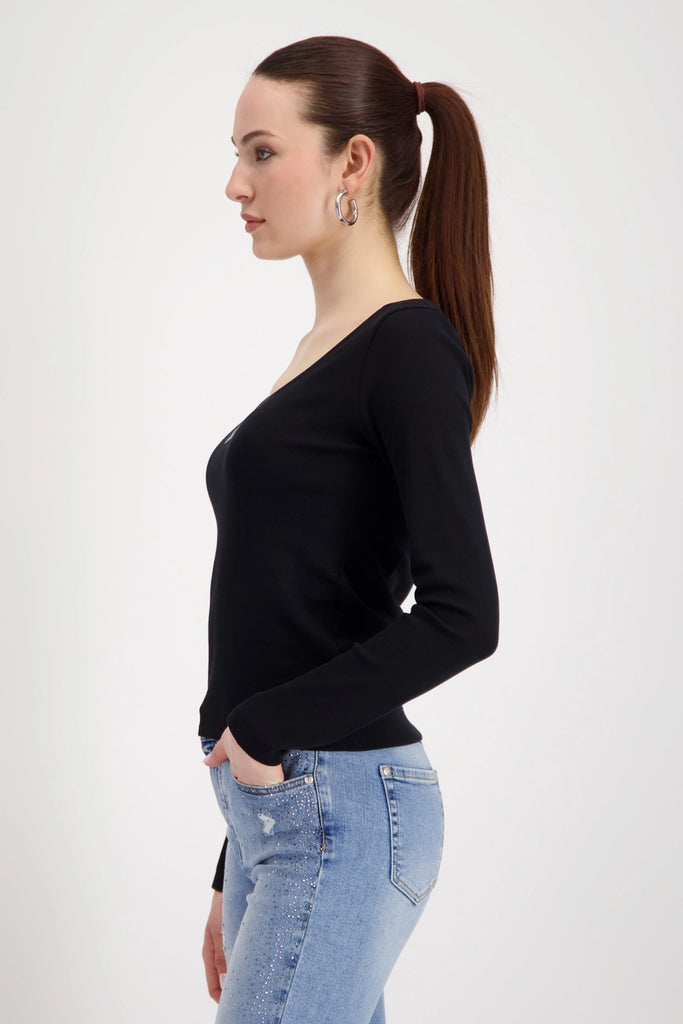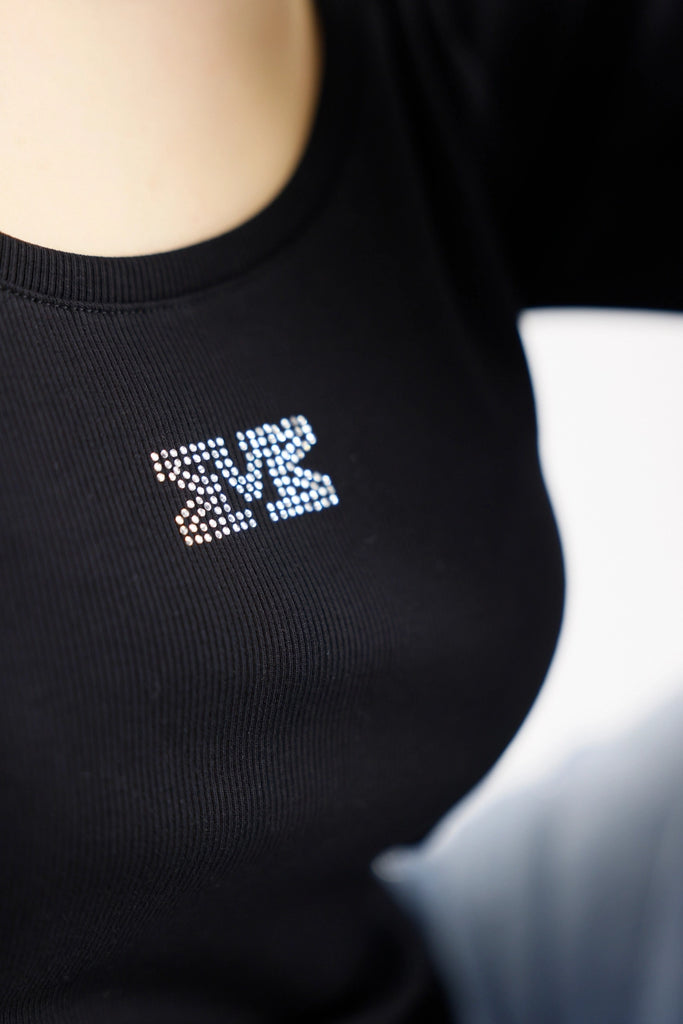 Round Neck Logo Top - Black
