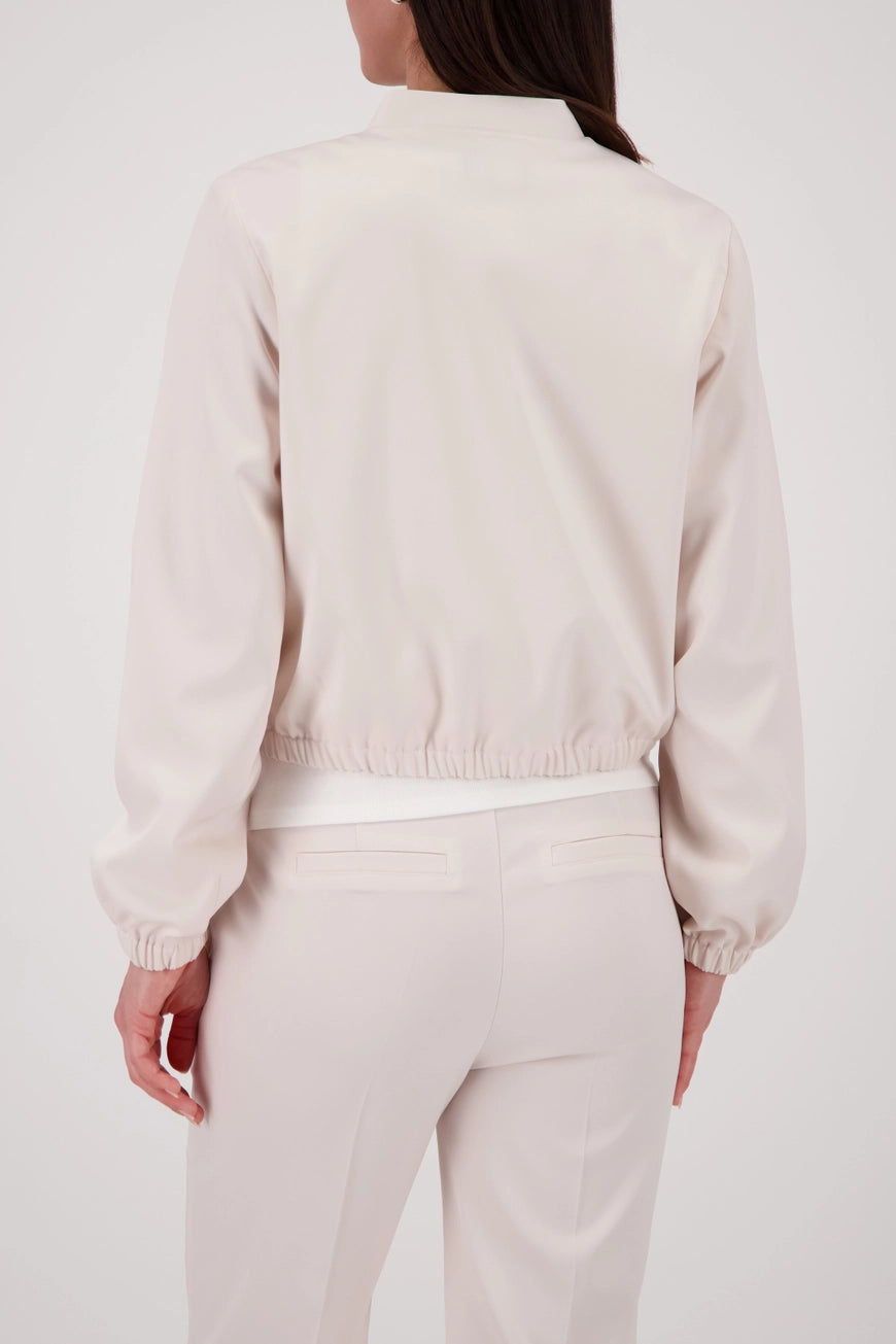 This elegant satin cargo jacket combines a round neckline and practical flap pockets to create a stylish, modern outfit