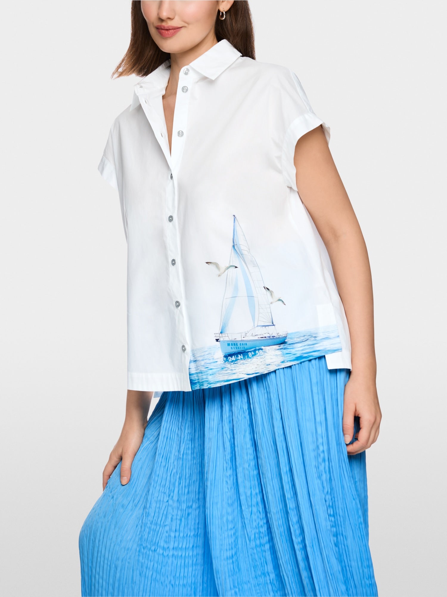 Loose blouse with short sleeves and a wide, relaxed cut. The blouse is made of pure cotton and feels pleasant against the skin. Further details include the classic collar and the full-length button placket. The highlight is the print on the lower front, which gives the blouse a maritime touch and shows a ship on the sea. Small slits are incorporated at the sides.
