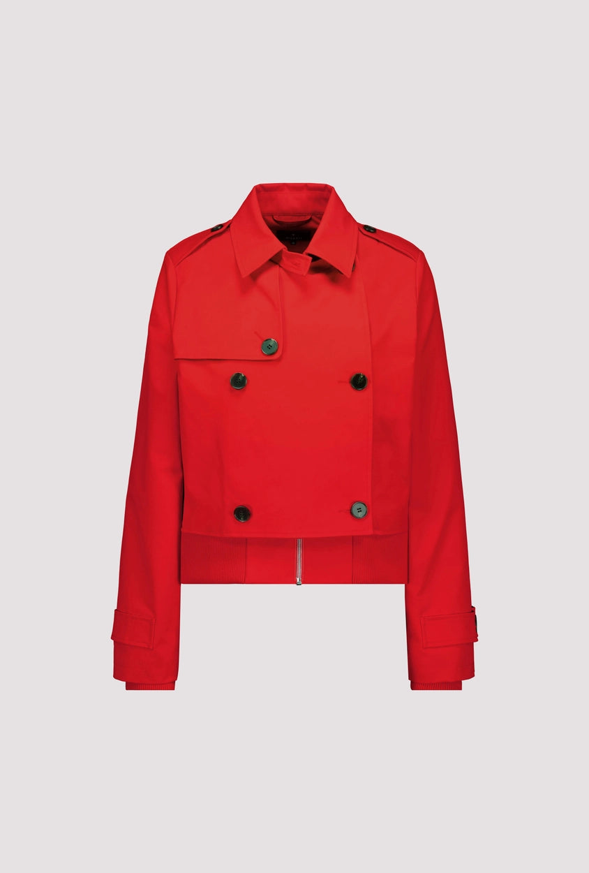 A stylish, short trench coat with a shirt collar and an elegant 2-way zipper for modern appearances.
