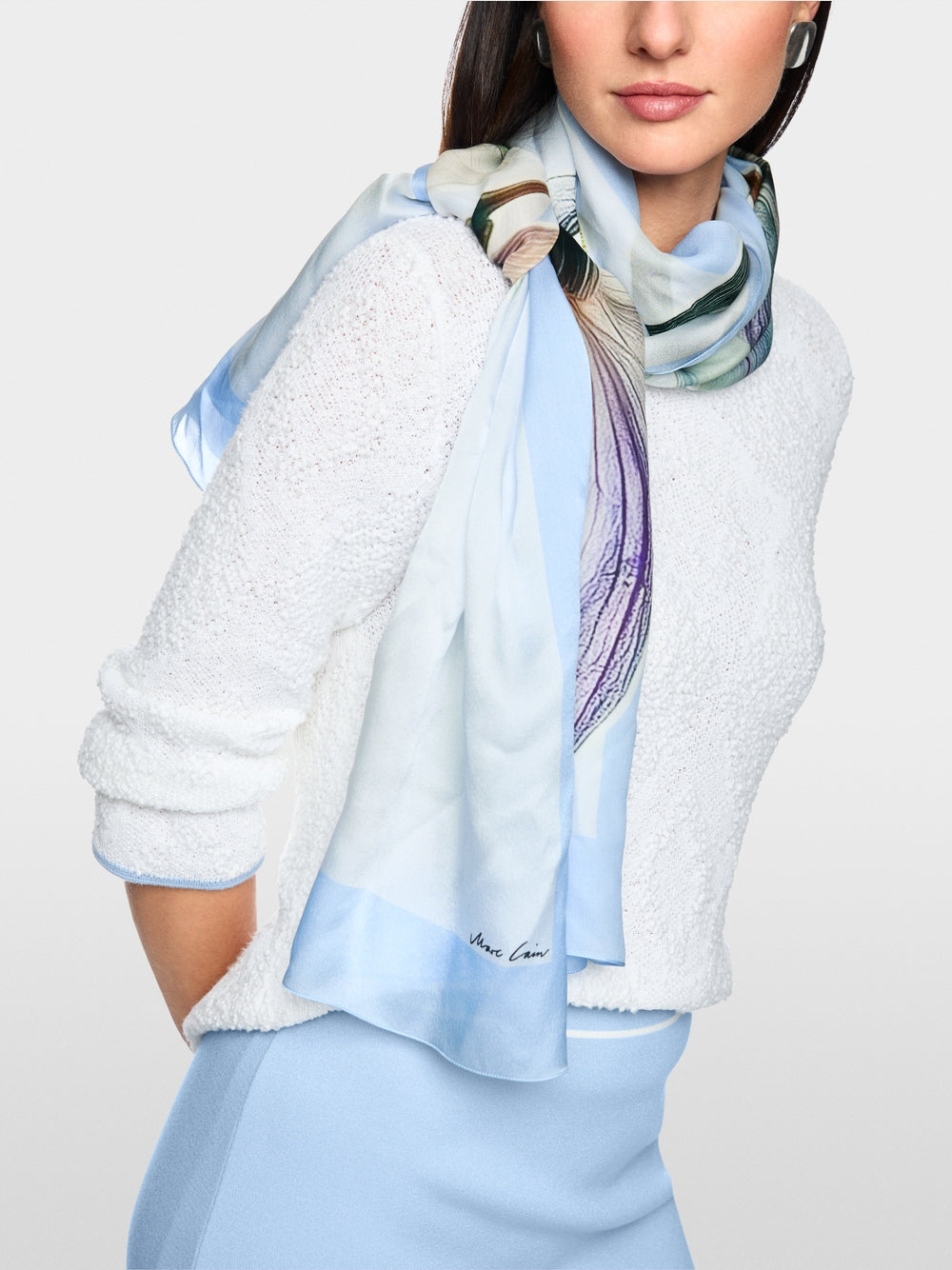 A light and airy scarf made of pure silk with a delicate lily print. The soft, flowing quality ensures pleasant comfort. Ideal as an elegant accessory to blouses, dresses or jackets, this scarf adds a feminine, light accent to any outfit.