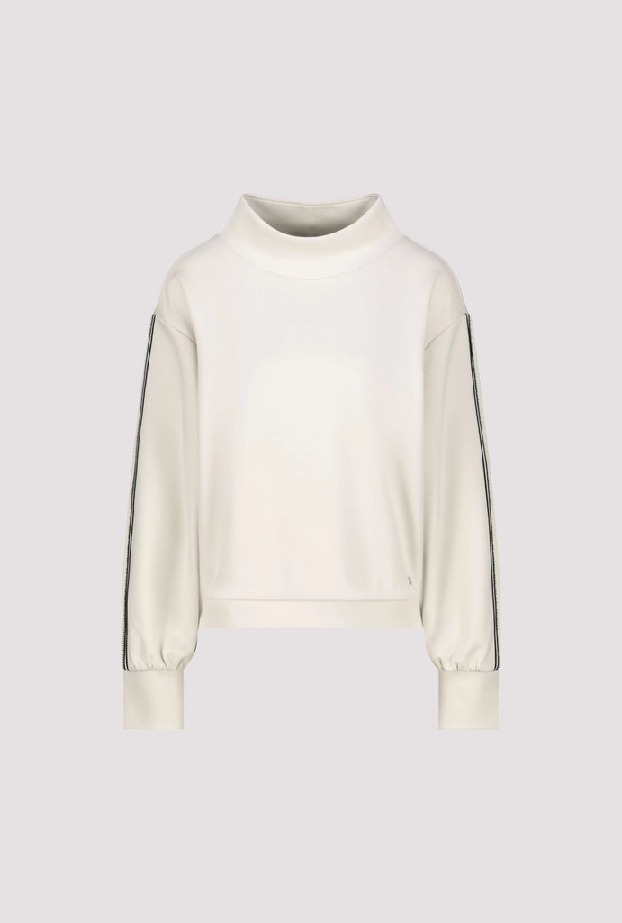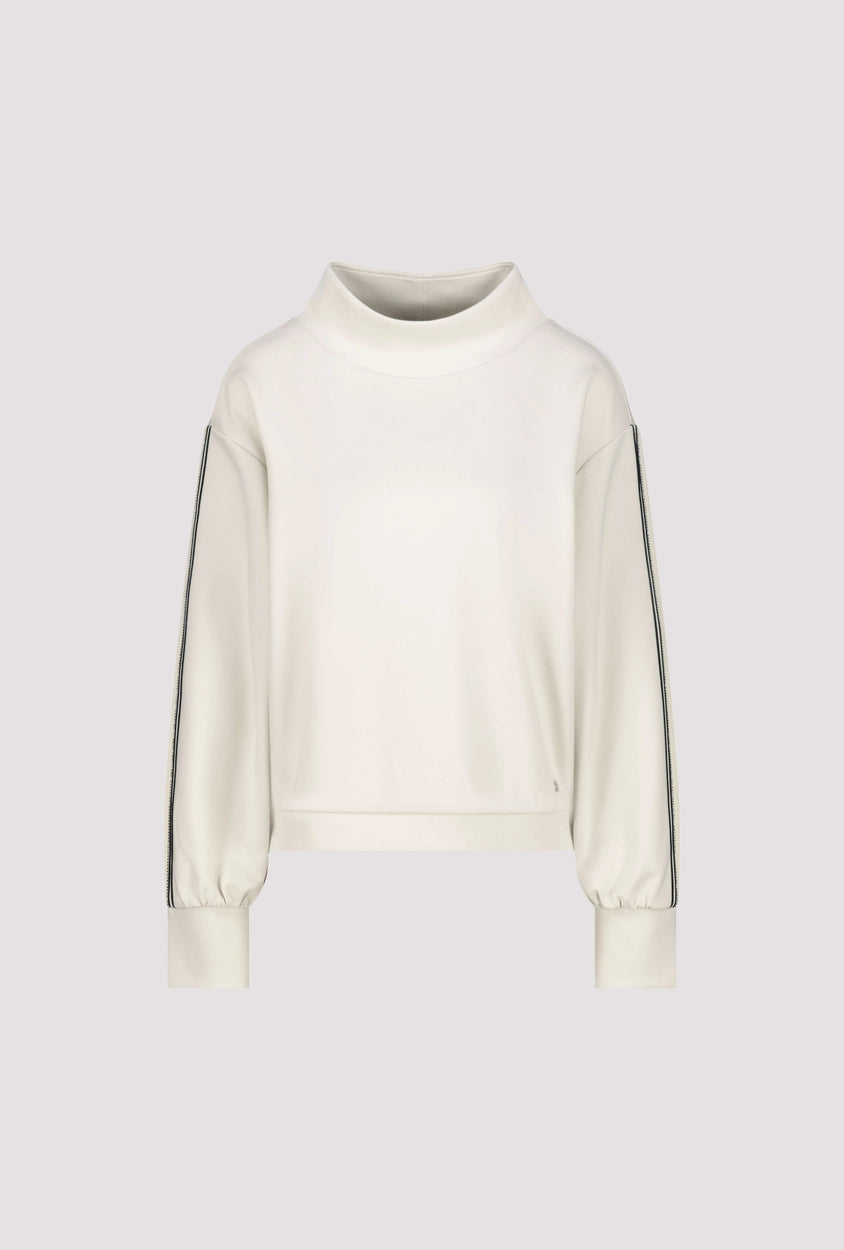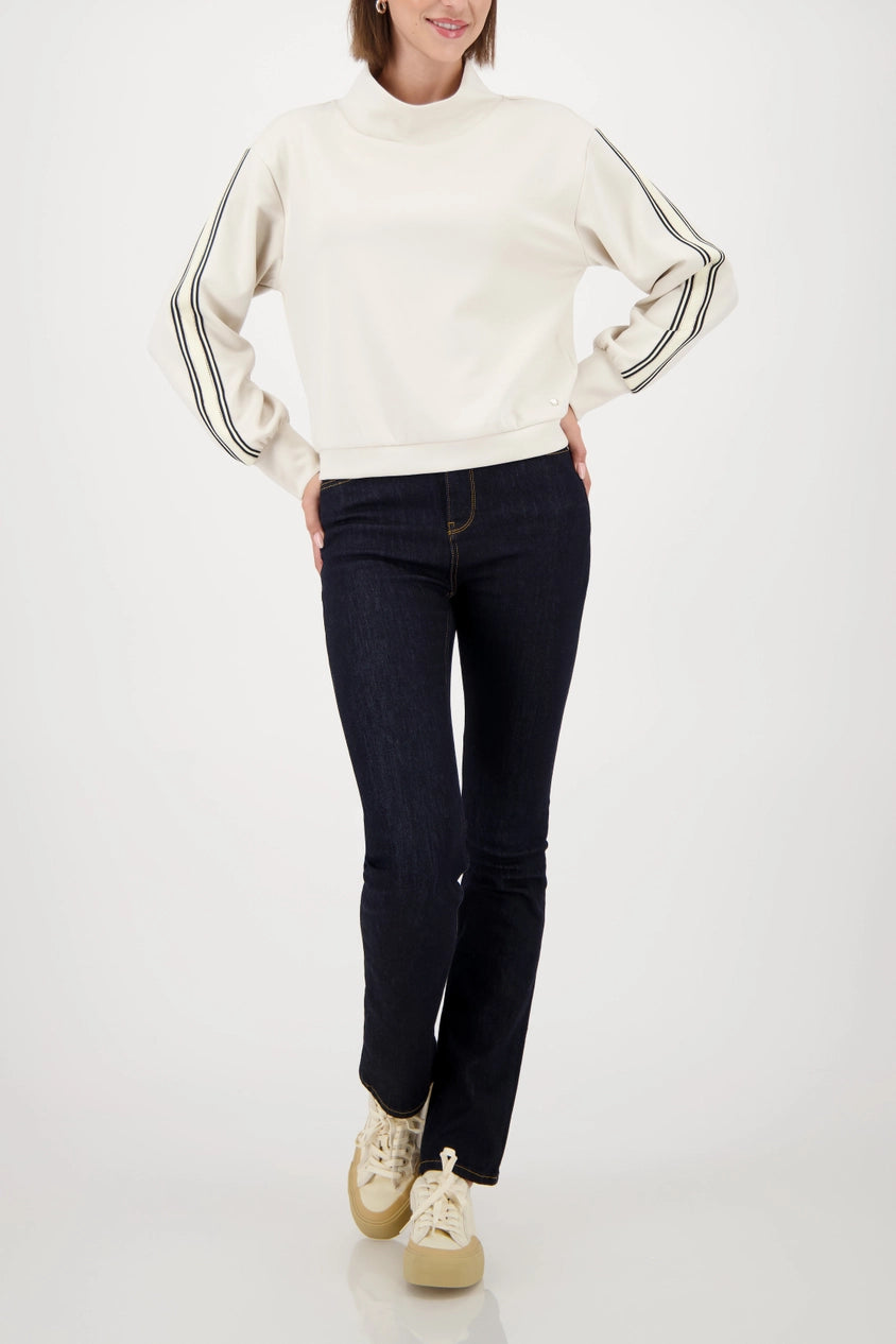 A stylish sweatshirt made of flowing viscose with stripes on the sleeve and glamorous rhinestones.