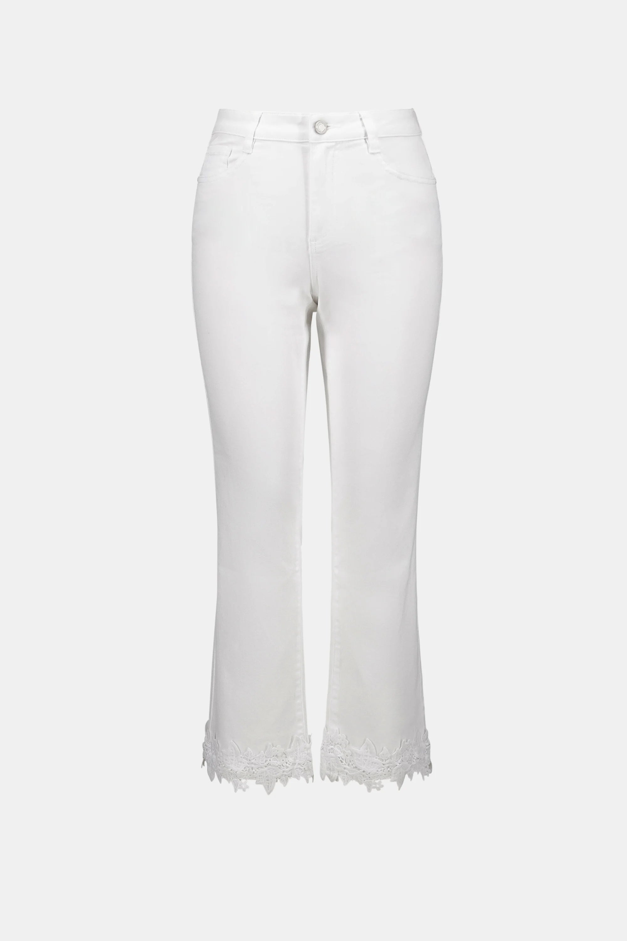 Straight Crop Jeans With Lace Appliqué - White