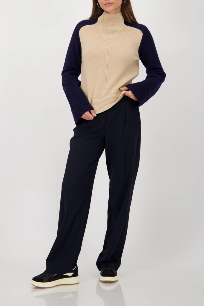 Experience stylish elegance with this sweater made from a high-quality wool blend with a modern colour block design and a soft feel.