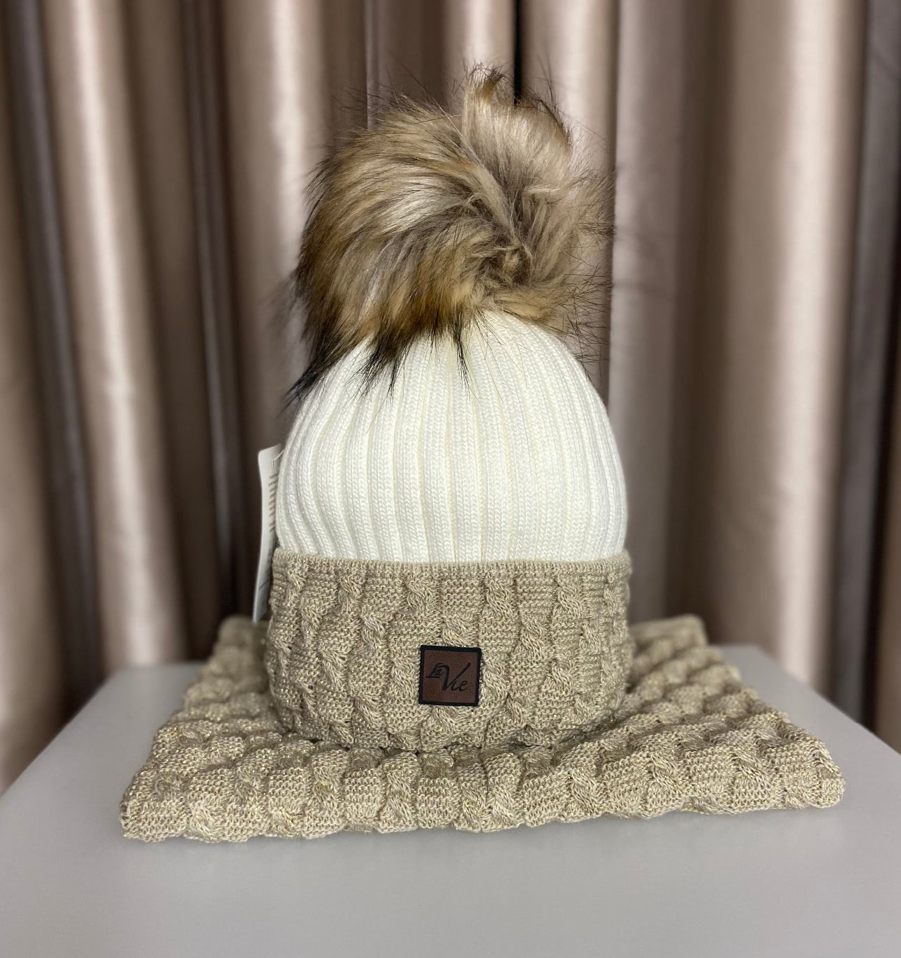 Two Tone Hat and Snood - Gold/Ivory