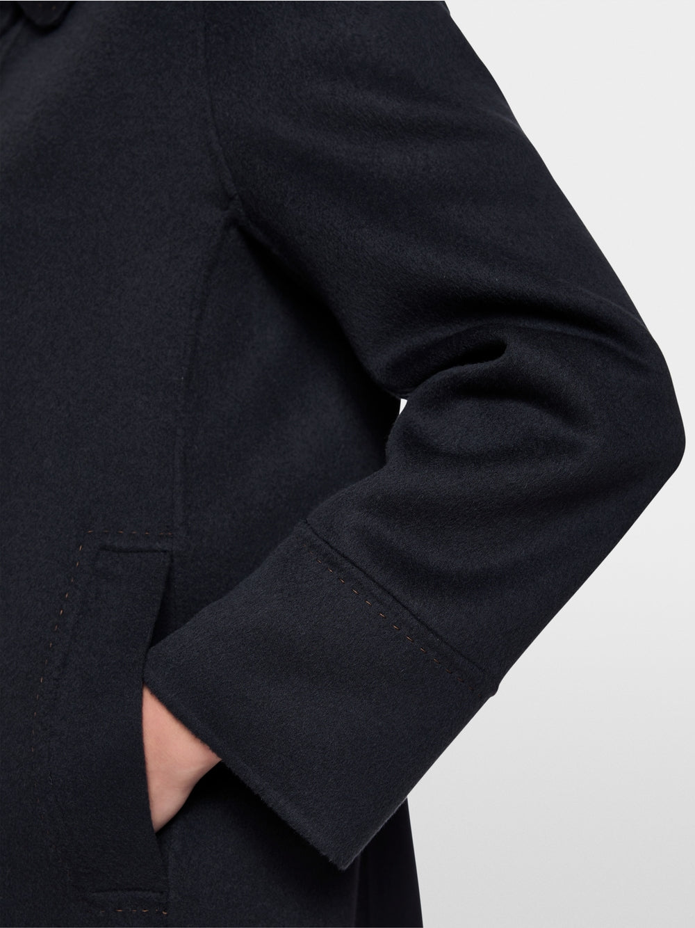 Elegant coat made from 100% pure wool for a stylish appearance. With side pockets, a striking belt detail on the back and fine contrasting stitching, this coat combines timeless elegance with modern design. High-quality workmanship ensures long-lasting comfort – a must-have for every wardrobe.